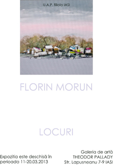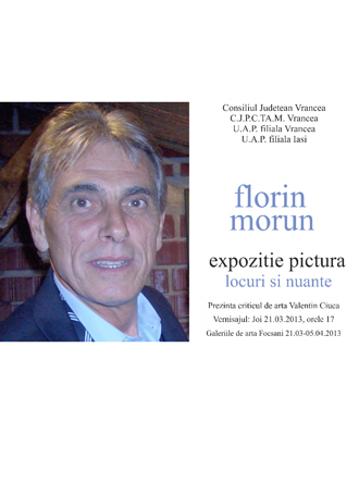 Evenimentul este organizat de Consiliul Judeţean Vrancea, Centrul Judeţean pentru Promovarea Culturii Tradiţionale, Artelor şi Meseriilor Vrancea şi U.A.P.România – Filiala Vrancea şi Filiala Iaşi. "Trebuie subliniată ideea că Florin Morun tinde spre o sinteză formal-cromatică din care detaliile au fost definitiv excluse .Unele elemente de grafism ornamental au valoare de accent şi sugerează notaţiile rapide ale desenatorului.Pictura lui Florin Morun este caldă ,ataşantă prin sentimentul indus imaginii, prin invitaţia la reverie lucidă", a declarat despre artist, criticul de artă Valentin Ciucă. De altfel, Valentin Ciucă va fi prezent şi va vernisa expoziţia de la Galeriile de Artă din Focşani.