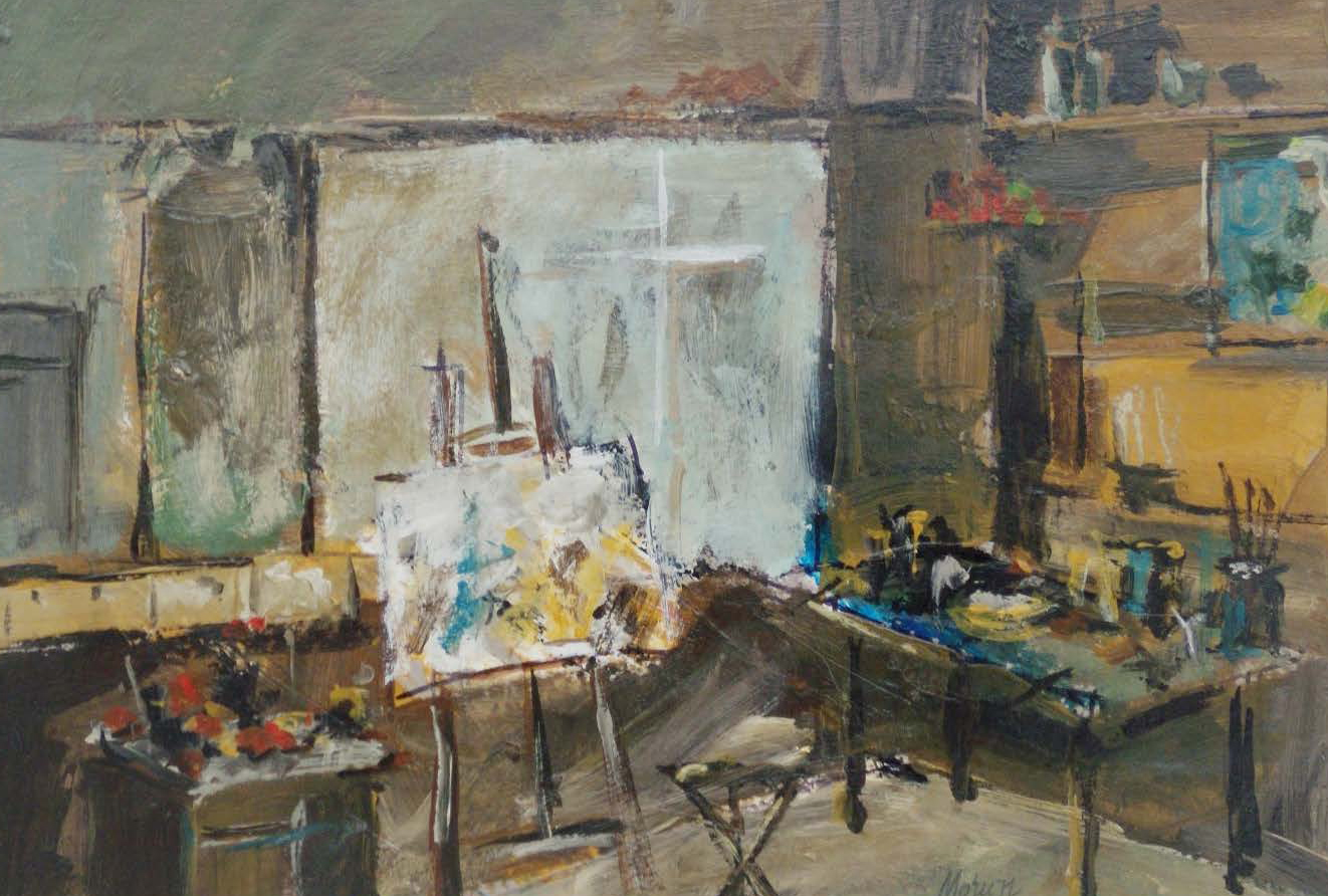 Atelierul artistului / Artist's studio, acrylic / cardboard, 35 x 50 cm, 2009