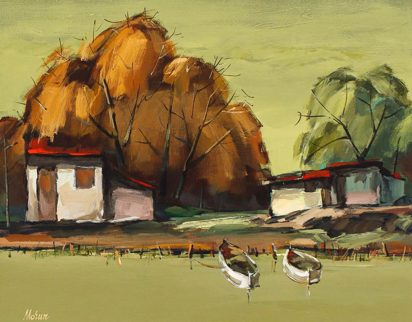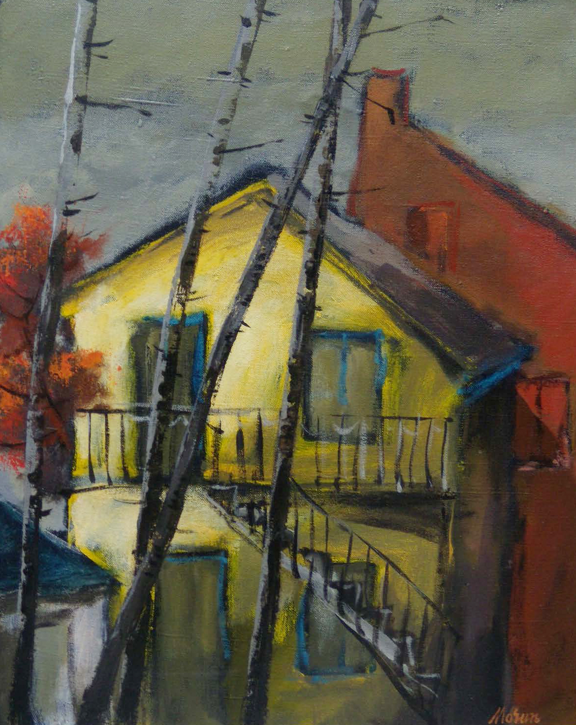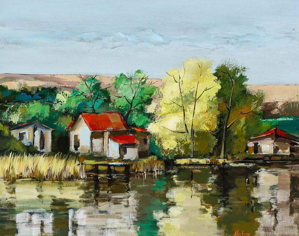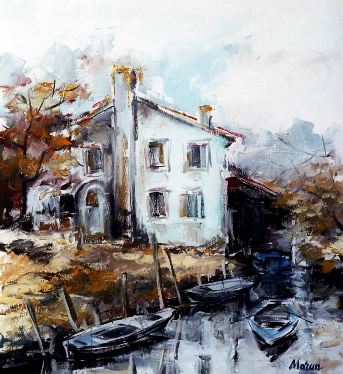 Cabane pe malul lacului / Cottages on the bank lacului- 2013 Acrylic / canvas 40 x 50 cm