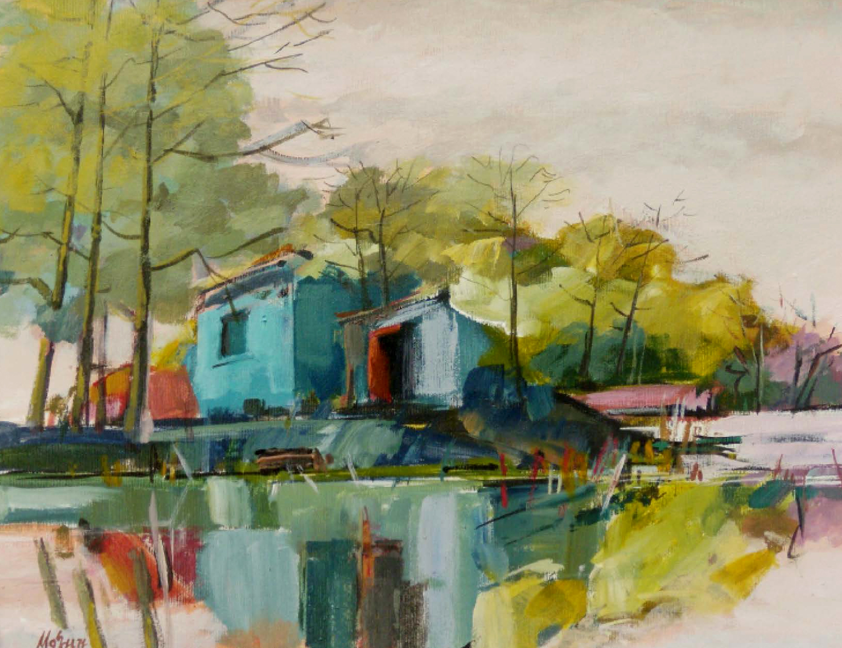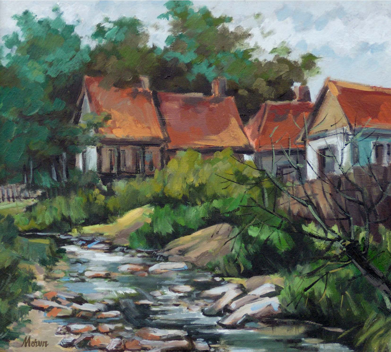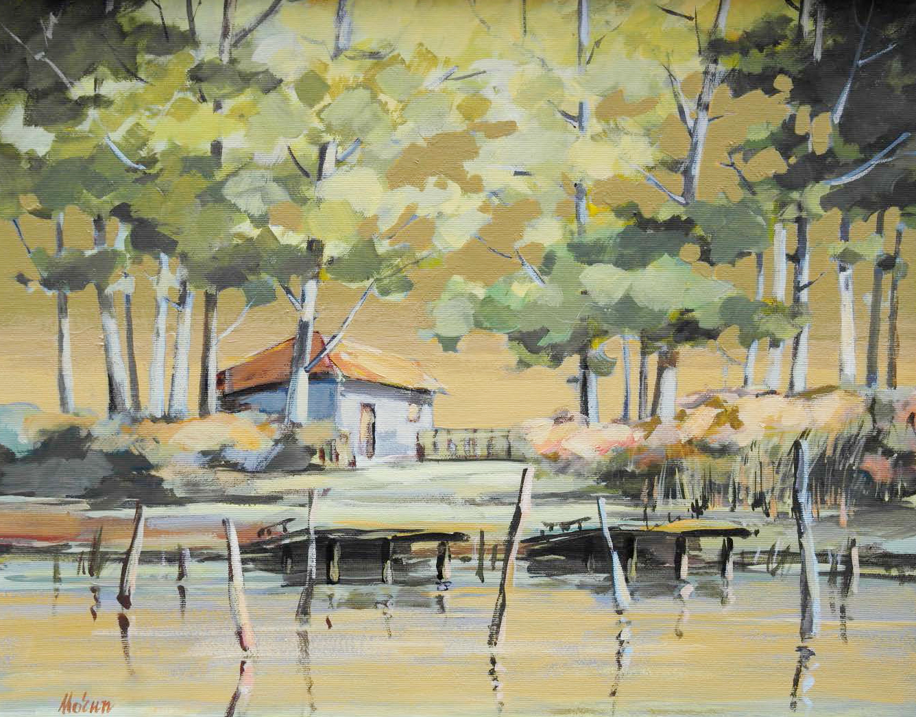 Cabane pe malul lacului / Cottages on the bank lacului- 2013 Acrylic / canvas 40 x 50 cm