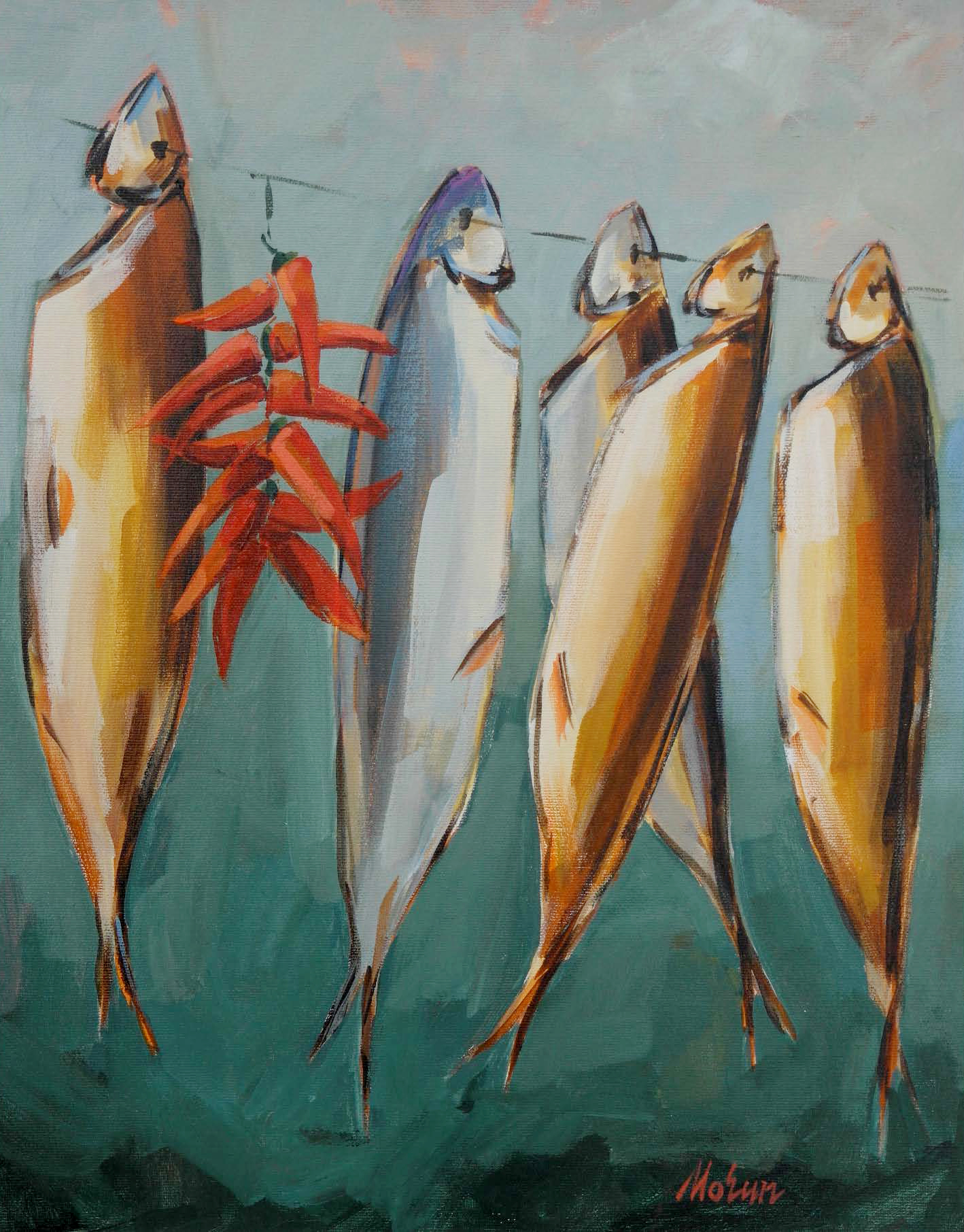 Pe?ti la uscat / Dried fish - 2011 Acrylic / canvas 50 x 40 cm