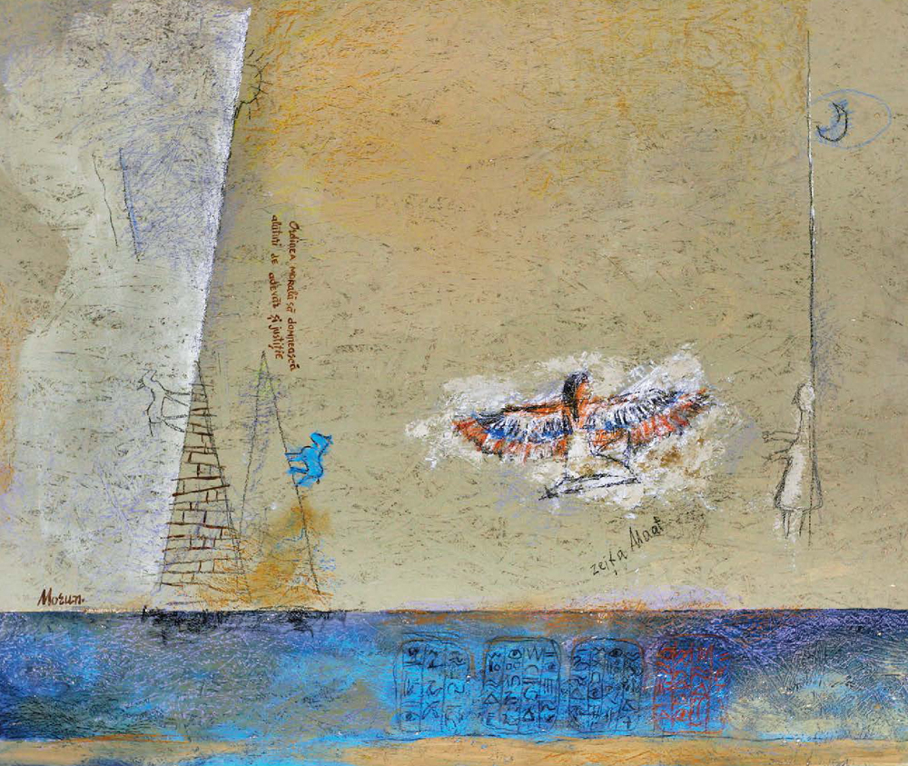 Libertatea conducând zmeul / Freedom leading kite, 2001 mixed technique, 88 x 78 cm