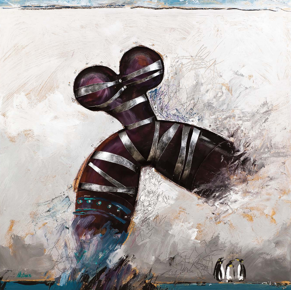 Pinguini îndragostiti / Inlove penguins, 2011 acrylic / canvas 80 x 80 cm